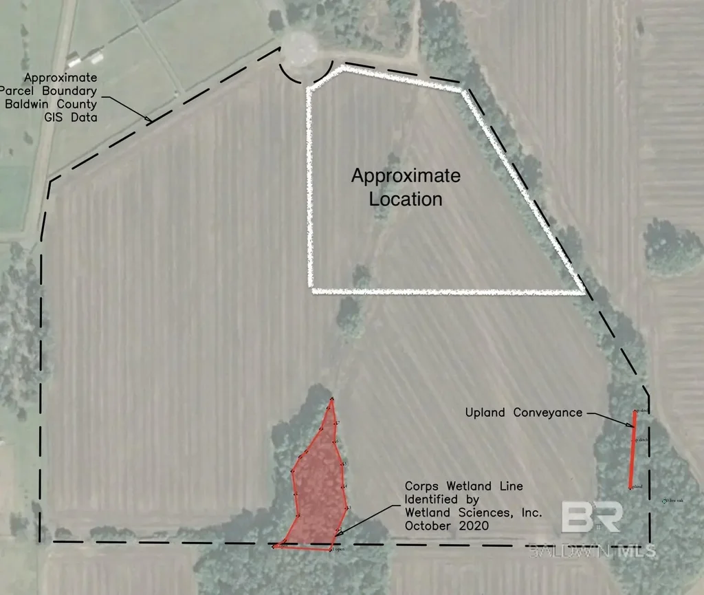 This 5+ acre homesite is surrounded by tranquil farms and estate homes. You will be an easy drive from favorite lower Baldwin restaurants, the bay, beach, groceries, shopping, services, boat launches, and marinas. The property has minimal deed restrictions and is NOT a party to an HOA. However, access to the property requires a drive thru Paddock Trace. This lot comes complete with a survey and a wetlands delineation and home design, estimated value of more than $13,000. It is ready for you to build. Buy, build and then watch the sunrise and set from your personal oasis. Buyer to verify all information during due diligence.