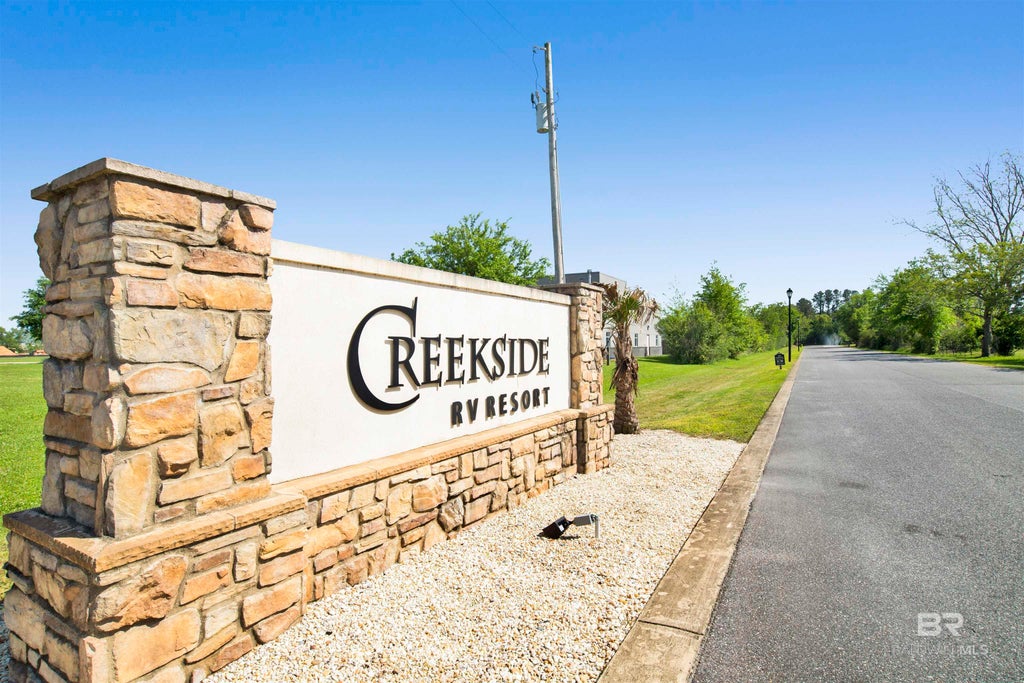 Fabulous RV resort in an equally fabulous location. Lot has a 20x60 concrete pad with a private pavilion and pergola. The pavilion has both water and electric outlets. This resort has a gorgeous heated & cooled pool, catch & release stocked pond, dog park, club house, on site laundry and large bath houses. Known for its welcoming environment, Creekside RV Resort is a subdivision of individual deeded lots without the on site management and price structure of a corporate owned RV Resort. All lots are rented individually by owners and depending on the improvements vary from lot to lot. Pet friendly RV Resort, with 61 spacious lots. Located close to OWA resort, Tropic Falls waterpark, Foley Sports Tourism and numerous dining options including the well-known Wolf Bay Lodge. The beautiful Alabama beaches are a short drive away! Buyer to verify all information during due diligence.