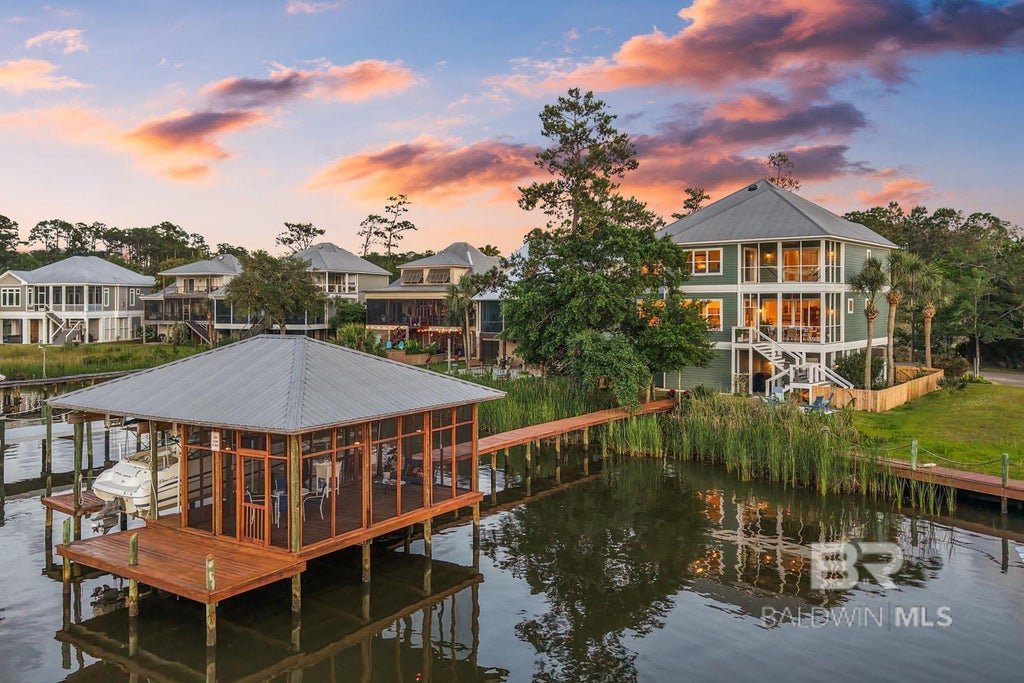 Discover this one-of-a-kind waterfront retreat located in the gated community of River Dance on the beautiful Bon Secour River. Situated in Gulf Shores, this home combines privacy and convenience with easy access to local amenities, shopping, dining, and entertainment, all while savoring the peaceful beauty of waterfront living. This exquisite 4-bedroom, 2.5-bathroom home spans an 3,330 sq. ft. and offers unparalleled views, luxury finishes, and thoughtful design for modern living. The spacious and flexible floor plan includes a 4th bedroom that can easily double as a home office and a sunroom that transforms into a formal dining space. The updated kitchen features Taj Mahal quartz countertops, stainless steel appliances and a large walk-in pantry for all your culinary needs. New luxury vinyl plank flooring and plush carpeting throughout. The master suite is a true sanctuary, featuring a sitting area with breathtaking river views, an updated bathroom with modern finishes, and ample closet space. A generously sized laundry room on the second floor includes extra storage and a convenient mini-fridge. The oversized garage offers abundant storage and workspace, perfect for hobbies or projects. A private boat house with a 10,000 lb. boat lift and screened porch area provides the ideal setting for fishing, boating, or simply enjoying the waterfront lifestyle. Relax by the sandy fire-pit area while taking in the tranquil riverfront scenery. Don't miss this rare opportunity to own a slice of paradise on Bon Secour River. Schedule your private showing today and experience all this exceptional property has to offer! Buyer to verify all information during due diligence.