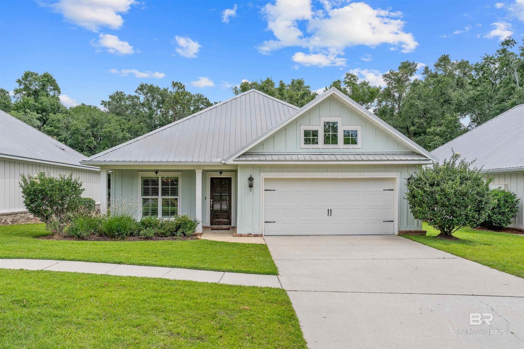 Charming coastal cottage in The Gardens on Randall! Open, airy floor plan with upgraded lighting, custom trim, and high-end window treatments. Chef’s kitchen features granite island, Bosch 5-burner gas cooktop, Butler’s pantry, and separate coffee bar. Cozy living room with fireplace and shiplap wall. Formal dining + 17x9 sunroom—ideal for office or entertaining. Beautiful outdoor space with stone patio, deck, fenced yard, and mature landscaping including citrus trees and more. Double garage, irrigation system, prime Daphne location near I-10, shopping, and dining. Buyer to verify all information during due diligence.