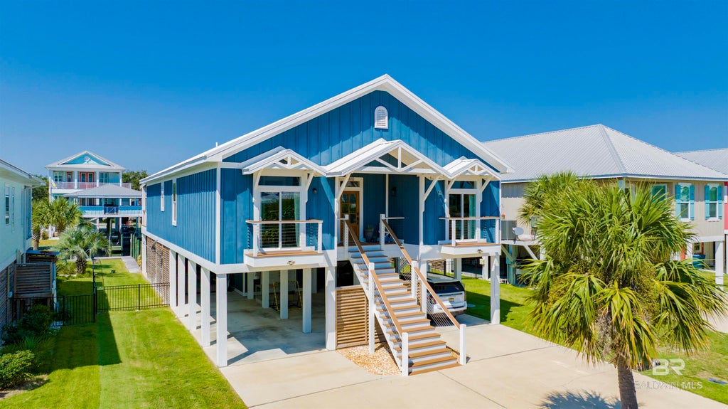 Beautiful Waterfront home with TWO Boat slips in Orange Beach! This 5 bedroom / 4.5 bath home features tile floor throughout, quartz counter tops, stainless steel appliances with wine cooler, updated primary bath, standing seem roof (2022), and large balcony over looking the canal. Located on a deep water canal with a covered boat slip with 16,000 lb. lift and open slip that will accommodate a 45' boat. Buyer to verify all information during due diligence.