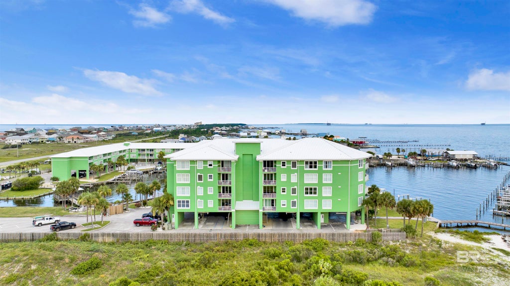 Calling all boaters! Experience the best of coastal living in this spacious 2-bedroom, 2-bath bayfront condo that blends modern updates with breathtaking views. Step inside to find luxury vinyl plank flooring, a sleek kitchen with stainless steel appliances, and an inviting open layout designed for relaxation and entertaining. Wake up to serene marina views and end the day with sweeping Gulf sunsets from your private balcony. For boating enthusiasts, enjoy the convenience of a DEEDED boat slip with a 16,000 lb. lift, plus a private boat ramp right in your gated community (boat slip #16). And don't forget the trailer parking onsite! Navy Cove Harbor is the ideal location for fishermen as snapper fishing off the rigs is just minutes away around the Fort Morgan Peninsula. With direct beach access across the street, your days can be filled with morning walks along the shore, afternoons on the water, and evenings soaking in the coastal breeze. Whether you’re looking for a turn-key vacation home or a waterfront escape to share with family and friends, this condo offers the perfect balance of comfort, style, and adventure. Priced to sell, this condo certainly won't last long, so schedule your in-person tour today. Buyer to verify all information during due diligence.