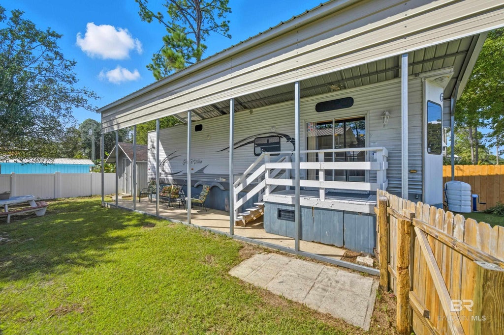 Charming 1BR/1BA in Spanish Cove! Enjoy a spacious fenced yard with a shed—perfect for storage, a man cave, or a she shed. Relax on the covered side porch ideal for sitting or grilling. Inside, this furnished home features a bright open layout with plenty of windows for natural light, a kitchen offering ample cabinet space, room for a dining table with four chairs, and a cozy electric fireplace. Includes a gas stove, dishwasher, disposal, washer/dryer hookup, and a stereo system with indoor and brand-new outdoor speakers. Spanish Cove is a golf cart community offering 24-hr security, a pool (covered & heated in winter), beach area, and a 500-ft fishing pier on beautiful Perdido Bay. Amenities also include 2 clubhouses, playgrounds, tennis, shuffleboard, basketball, fitness room, laundry facilities. Low POA dues with trash pickup included. Activities Committee plan fun events—water aerobics, book club, games, trips to Biloxi Casinos, live music & much more! Perfectly located near the AL/FL stateline, close to beaches, boat launch & downtown Pensacola. Buyer to verify all information during due diligence.
